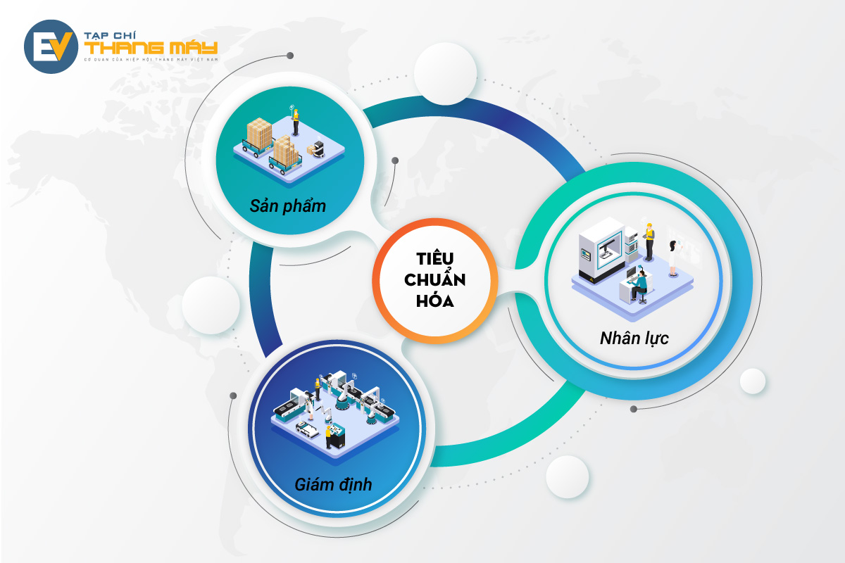 Có 3 lĩnh vực cần được tiêu chuẩn hoá để hướng đến sự phát triển toàn diện của ngành thang máy: sản phẩm, nhân lực và giám định.